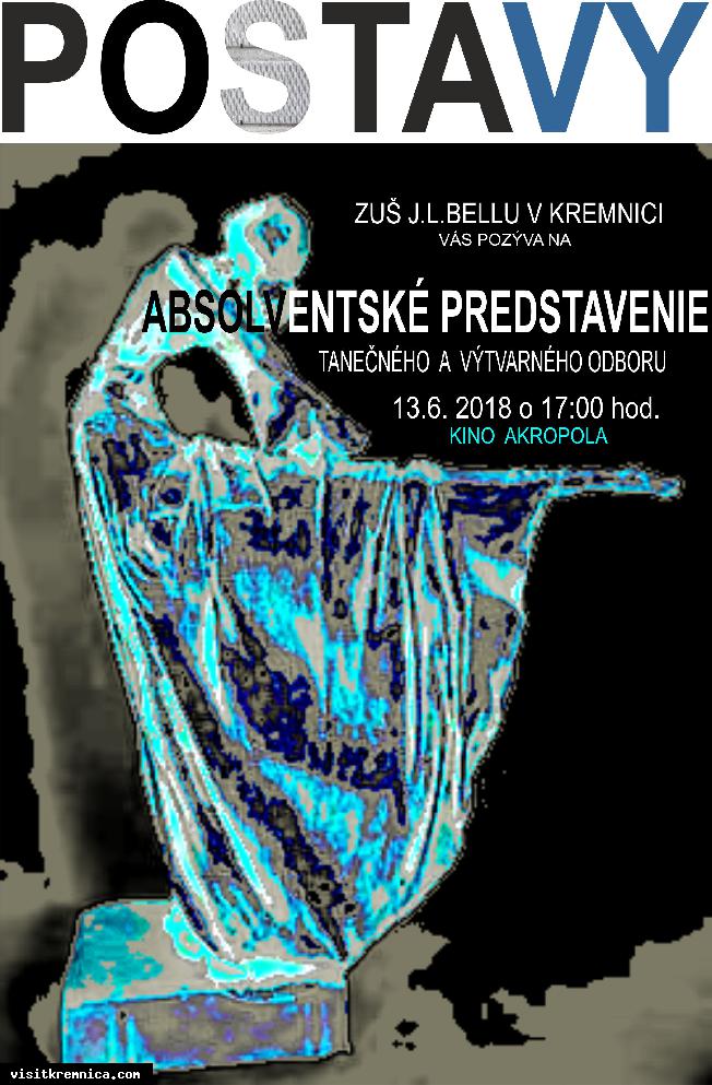 Čo: Absolventské predstavenie TO a VO 2018 Kedy: 13. jún 2018, 17.00 Kde: Akropola Kremnica ZUŠ J. L. Bellu v Kremnici Vás pozýva na absolventské predstavenie Tanečného a Výtvarného odboru školy