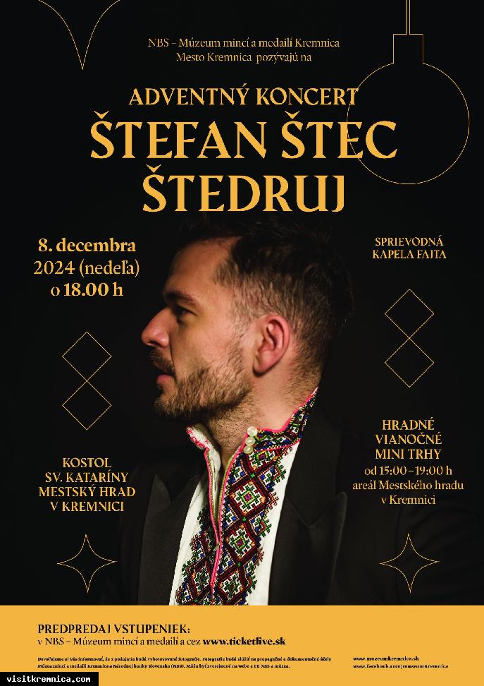 NBS - Múzeum mincí a medailí Kremnica a Mesto Kremnica Vás pozývajú na Hradné Vianočné mini trhy a adventný koncert Štefan Štec štedruje (18:00 v Kostole sv. Kataríny).