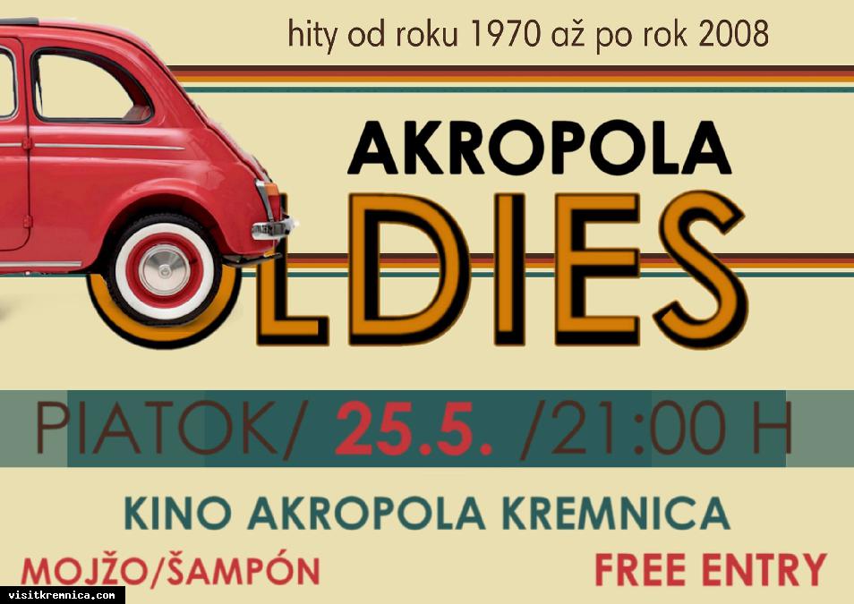 Čo: Akropola Oldies Kedy: 25. máj 2018, 21.00 Kde: Akropola Kremnica Druhá oldies párty tohto roku... Dvaja kremnický dídžeji vás prevezú na kolesách hitov troch hudobných desaťročí ... Tomáš Mojžo Mojžiška Branislav Šampónik Debnárik