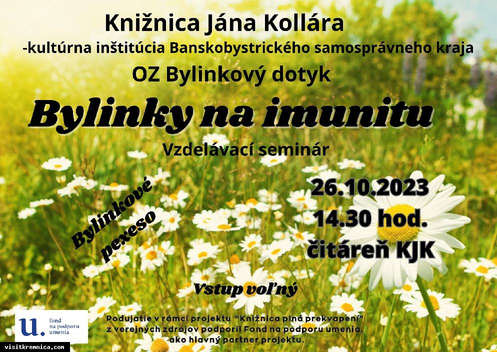 Srdečne vás pozývame na vzdelávací seminár organizovaný v spolupráci s OZ Bylinkový dotyk z Martina venovaný bylinkám vhodným na imunitu a ich využitiu pre naše zdravie. Bylinky a výrobky z nich bude možné si aj zakúpiť.