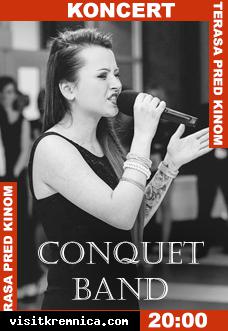 Čo: Conquet band Kedy: 25. august 2017, 20:00 Kde: Kino Akropola Kremnica Spev Patrícia Mlynáriková, basgitara Juraj Namešny, bicie Lukáš Baumnann, giitara Kajo Toma, swing, bossa nova, jazz latin.