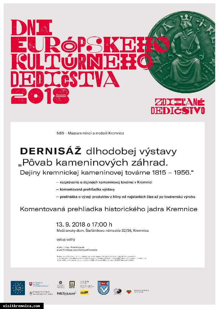 Počas dernisáže budete mať príležitosť pozrieť si výstavu kremnickej keramiky, informácie o histórii kremnickej kameninovej továrne (1815 - 1956) Vám sprostredkuje PhDr. Valéria Solčániová a o histórii vývoja produktov z hliny od najstarších čias až po továrenskú výrobu Vám porozpráva Bc. Adrián Kobetič. Následne Vás Adrián Kobetič prevedie historickým jadrom Kremnice naprieč jeho veľkými dejinami, každodennosťou a premenami.