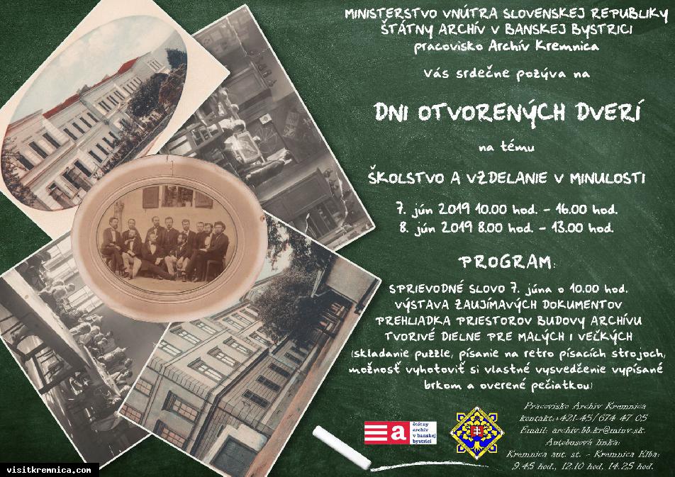 MV SR Štátny archív v Banskej Bystrici, pracovisko Archív Kremnica pozýva na Dni otvorených dverí, na tému Školstvo a vzdelávanie v minulosti.