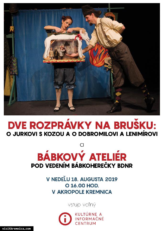 Kultúrne a informačné centrum mesta Kremnica pozýva všetky deti na bábkové divadlo "Dve rozprávky na brušku" a bábkový ateliér pod vedením bábkoherečky Bábkového divadla Na rázcestí.
