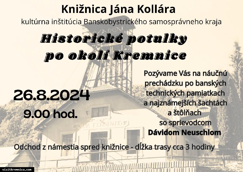 Chcete sa dozvedieť viac o histórii baníkov v okolí Kremnice? Pozývame Vás na náučnú prechádzku so sprievodcom Dávidom Neuschlom, ktorý predstaví banské technické pamiatky a najznámejšie šachty a štôlne.