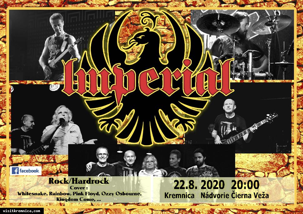 Čo: Imperial Kedy: 22. august 2020, 20.00 Kde: nádvorie Čierna veža Vystúpenie rock a hardrock kapely interpetujúcej cover verzie skladieb od Whitesnake, Rainvow, Pink Floyd, Ozzy Osbourne ...