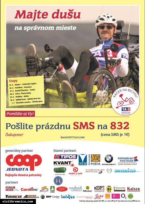 Čo: Káčer na bicykli / Majte dušu na správnom mieste Kedy: 26. jún 2017, 12:45 Kde: Pešia zóna, pri SLSP Známy cyklista a jeho benefičný projekt aj v Kremnici. Sprievodný program zabezpečia žiaci ZUŠ J.L.Bellu v Kremnici.