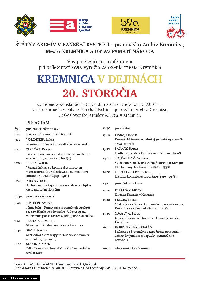 Štátny archív v banskej Bystrici - pracovsiko Archív Kremnica, mesto Kremnica a Ústav pamäti národa Vás pozývajú na koferenciu pri príležitosti 690. výročia založenia mesta Kremnica.
