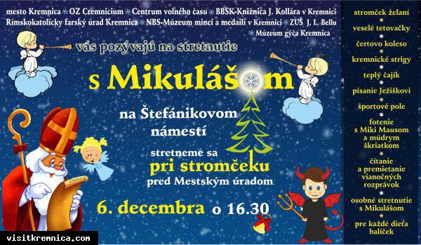 Pozývame Vás na stretnutie s Mikulášom, na Štefánikovom námestí pri vianočnom stromčeku pred Mestským úradom.