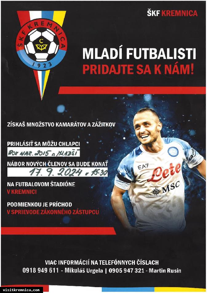 Mladí futbalisti pridajte sa k nám. Získate množstvo kamarátov a zážitkov. Prihlásiť sa môžu chlapci rok narodenia 2015 a mladší. Podmienkouje príchod v sprievode zákonného zástupcu.