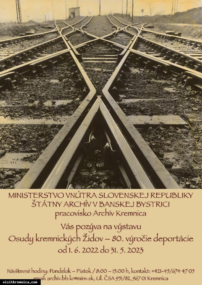 Ministerstvo vnútra Slovenskej republiky, Štátny archív v Banskej Bystrici pracovisko Archív Kremnica Vás pozývajú na výstavu k 80. výročiu deportácií Židov na Slovensku. Výstava potrvá do 1.6.2022 do 31.5.2023.