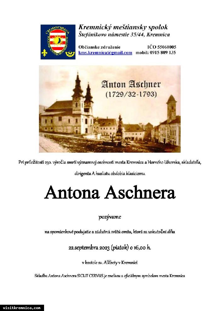 Občianske združenie – Kremnický meštiansky spolok vás pozýva na pietnu spomienku pri príležitosti 230. výročia smrti významnej osobnosti mesta Kremnica a Horného Uhorska, skladateľa, dirigenta a huslistu obdobia klasicizmu Antona Aschnera
