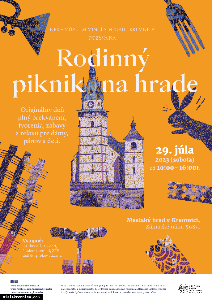 Počas celého dňa budú svoje ručne vyrobené výrobky ponúkať lokálni remeselníci, na hrade bude čajovňa aj stánky s piknik jedlami. Degustácia káv bude v réžii zanieteného kremnického baristu Róberta Palíka. Okrem piknikového programu budú prebiehať aj tradičné lektorované prehliadky v kostole sv. Kataríny.