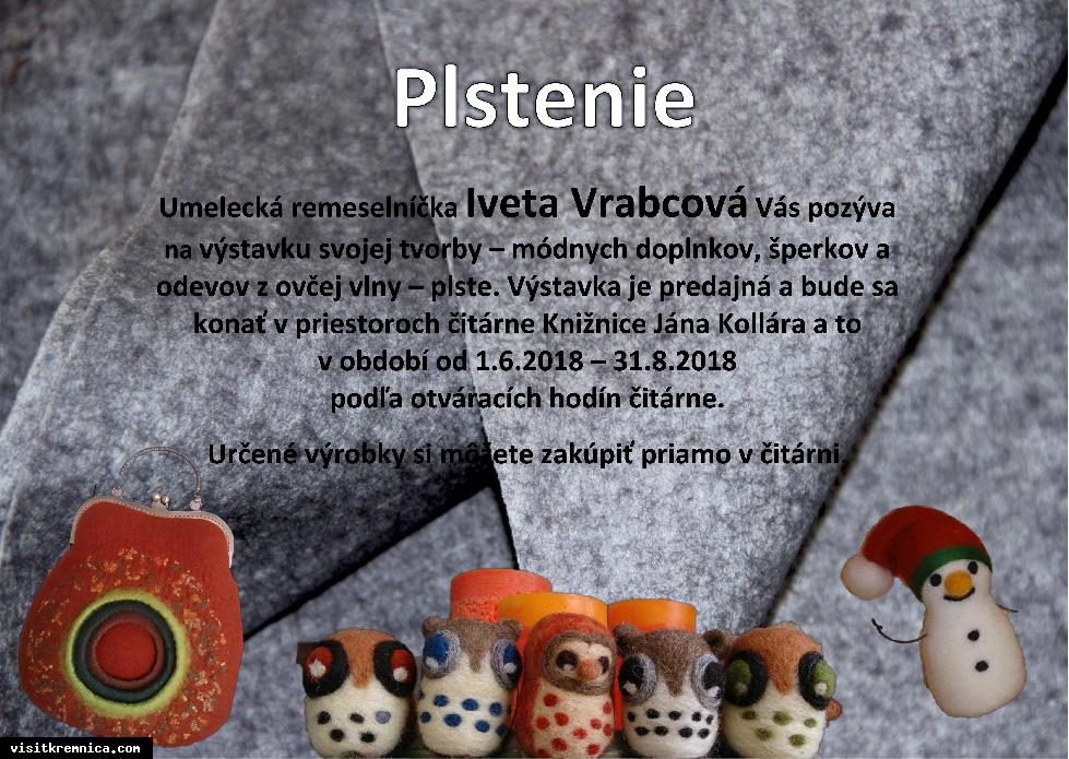 Umelecká remeselníčka Iveta Vrabcová Vás pozýva na výstavu svojej tvorby - módnych doplnkov, šperkov a odevov z ovčej vlny - plste. Výstava je predajná. Určené výrobky si môžete zakúpiť priamo v čitárni.