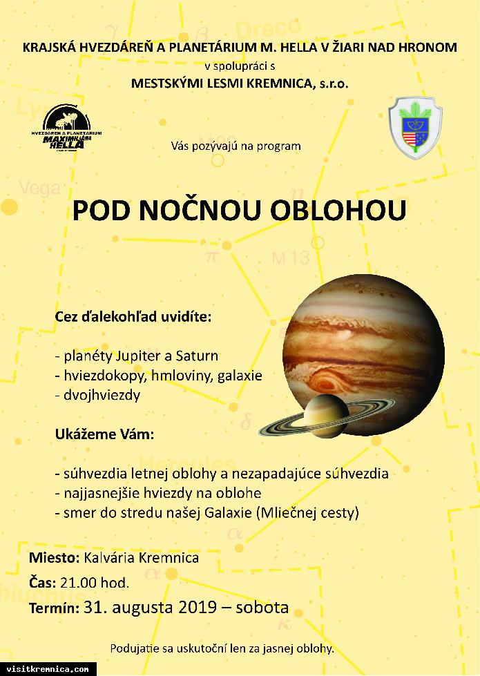 Čo: Pod nočnou oblohou / náhradný termín Kedy: 31. august 2019, 21.00 Kde: Kalvária Kremnica