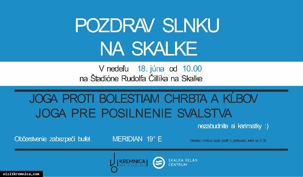 Mesto Kremnica, Kultúrne a informačné centrum Vás pozýva na nedeľu plnú jogy. Joga proti bolestiam chrbta a kĺbov, joga pre posilnenie svalstva. Potrebné doniesť vlastné karimatky. Občerstvenie zabezpečí bufet Meridian 19° E. Mestský minibus bude jazdiť z parkoviska Jeleň od 09:30.