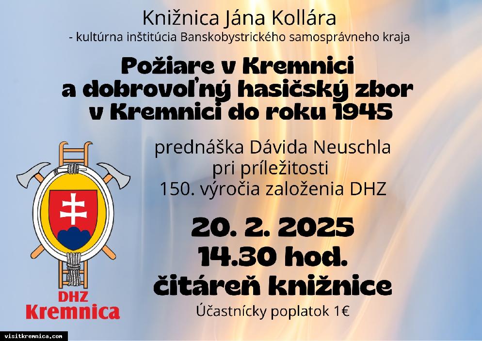 Knižnica Jána Kollára Vás pozýva na prednášku Dávida Neuschla pri príležitosti 150. výročia založenia Dobrovoľného hasičského zboru.
