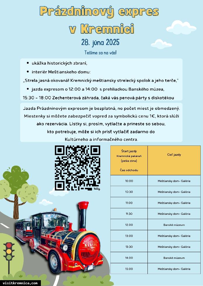 Začnite letné prázdniny v našom meste s Prázdninovým expresom a užite si jazdu vláčikom, výstavu historických terčov, návštevu múzea aj super zábavu na diskotéke s penovou párty v Zechenterke!