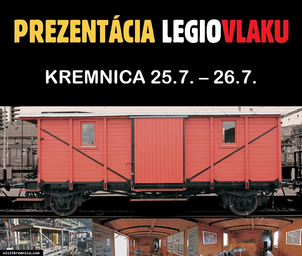 Československá obec legionárska, Nadácia Milana Rastislava Štefánika, Železnice Slovenskej republiky, Klub historickej techniky Zvolen, Oblastná organizácia CR Gemer a Mesto Kremnica si Vás dovoľujú pozvať na unikátnu expozíciu LEGIOVLAK.