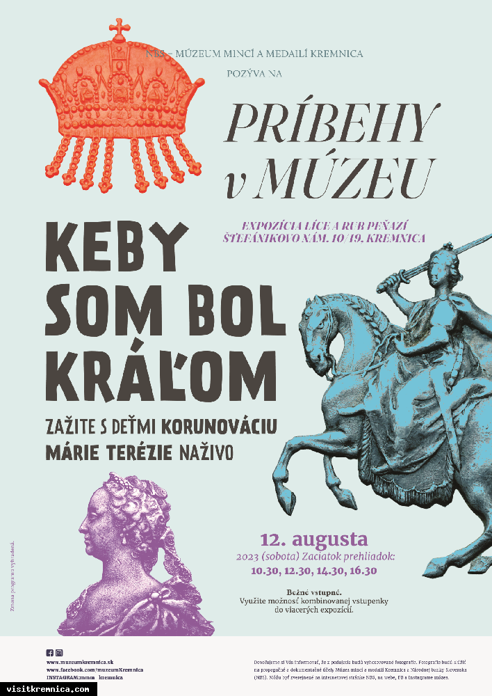 Na rodinnom podujatí Keby som bol kráľom deti zažijú korunováciu Márie Terézie, privítajú cisára Františka Lotrinského v Kremnici, sfárajú do bane, vyrazia si pamätný žetón, zúčastnia sa slávnostných strelieb pri morovom stĺpe a na záver sa zúčastnia korunovačnej hostiny v meštianskom dome. Ich prvou úlohou však bude vymyslieť, čo by urobili, keby boli kráľmi alebo kráľovnami. Večer zavŕši koncert herca a speváka Mila Kráľa a Barbory Švidraňovej.