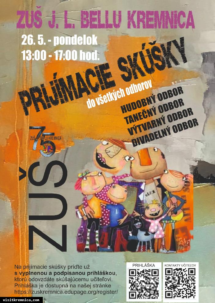 ZUŠ J. L. Bellu v Kremnici pozýva všetky deti, mladých ľudí, ale aj dospelých na prijímacie skúšky do všetkých štyroch umeleckých odborov školy (Hudobný, Tanečný, Výtvarný, Divadeľný).