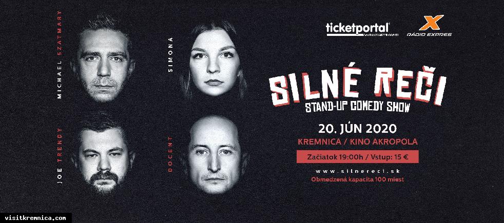 Silné Reči stand-up comedy show, to je záruka toho, že vás čakajú dve hodiny plné zábavy. Ostrieľaní komici ale aj vychádzajúce hviezdy slovenskej komédie sa na doskách, ktoré znamanejú smiech postarajú o to, že z predstavenia odídete s úsmevom na tvári.
