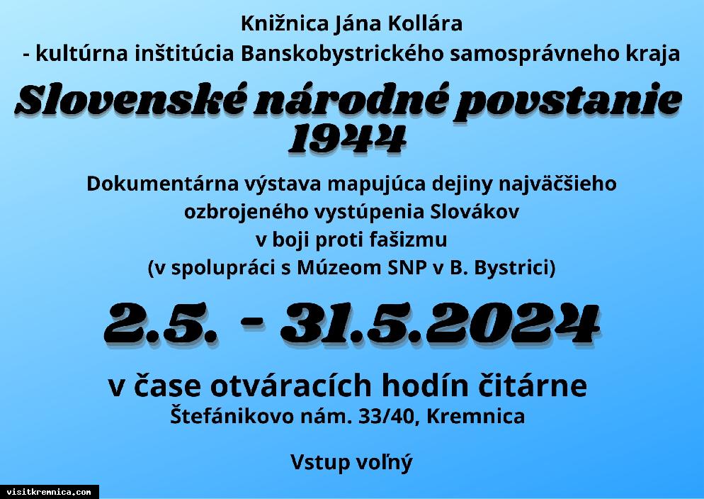 Pri príležitosti 80. výročia SNP Vás srdečne pozývame do čitárne na výstavu Slovenské národné povstanie 1944, ktorú zapožičalo Múzeum SNP v B. Bystrici.