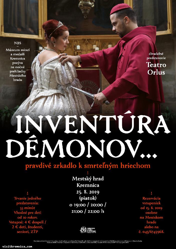 Čo: Strašidlá na hrade / Inventúra démonov Kedy: 23. august 2019, 19.00 Kde: Mestský hrad Kremnica NBS - Múzeum mincí a medailí Kremnica pozýva na dramatizované divadelné prehliadky.