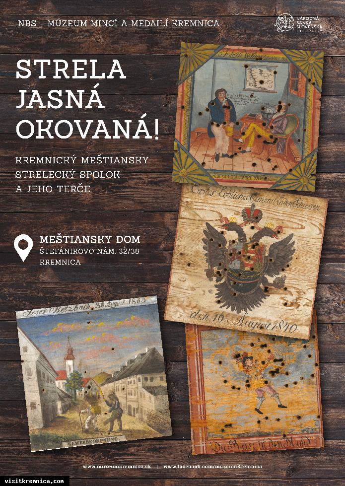 NBS MMM Vás pozýva na vernisáž výstavy Strela jasná okovaná, v ktorej môžete vidieť historické terče Kremnického meštianskeho streleckého spolku.