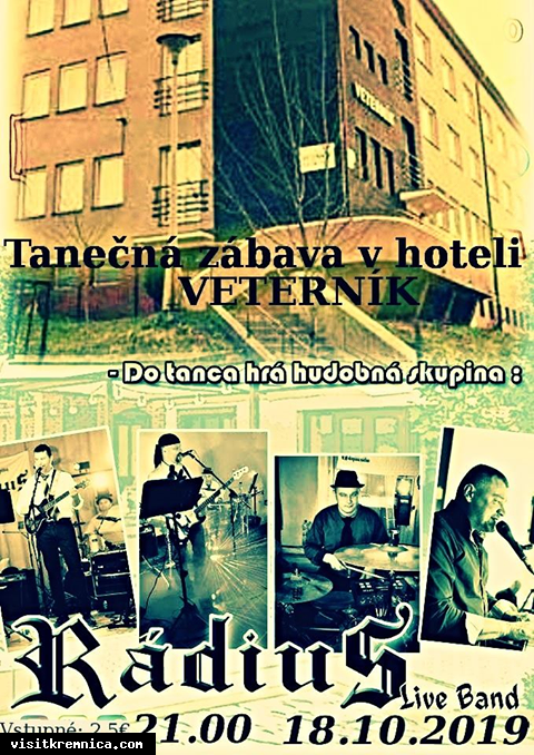 Čo : Tanečná zábava s Rádiusom Kedy: 18. október 2019, 21.00 Kde: Hotel Veterník v Kremnici