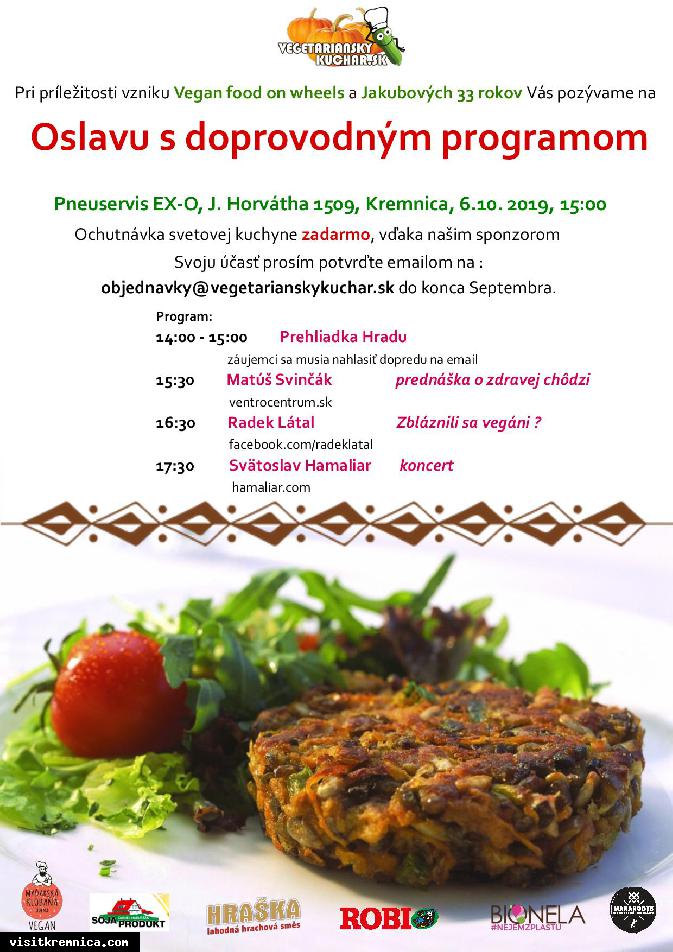 Podujatie sa koná pri príležitosti výročia vzniku Vegan food on wheels a 33. narodenín majiteľa Jakuba. Ochutnávka svetovej kuchyne zadarmo.