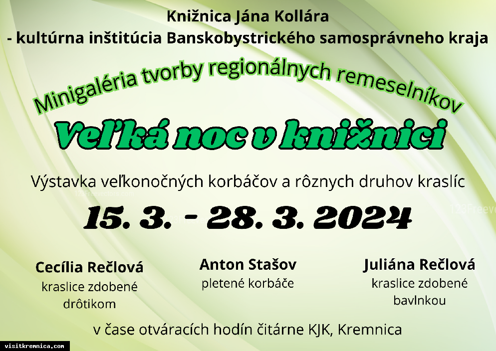 Čo: Veľká noc v knižnici - výstavka Kedy: 15.3. - 28.3.2024 Kde: Čitáreň knižnice J. Kollára