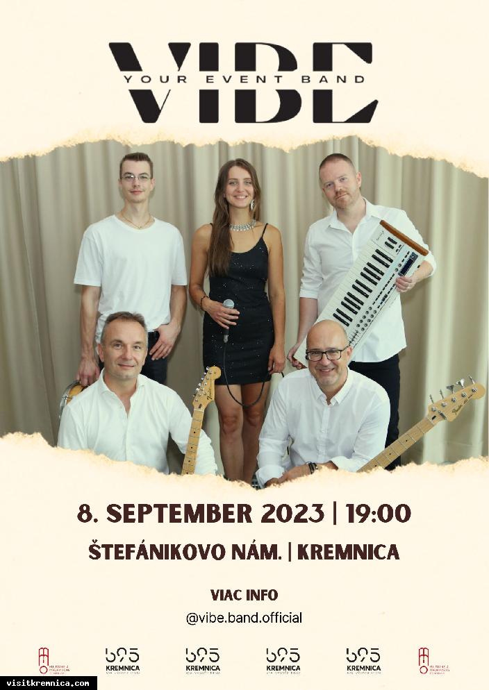 Skupina VIBE učarovala kremnickému publiku a naopak. Preto sme skupinu pozvali, aby uzavrela naše hudobné leto. V piatok 8.9. sa kapela rozloží na Štefánikovom námestí, nad Dolnou bránou. Príďte si užiť nezabudnuteľné svetové, ale aj české a slovenské hity.