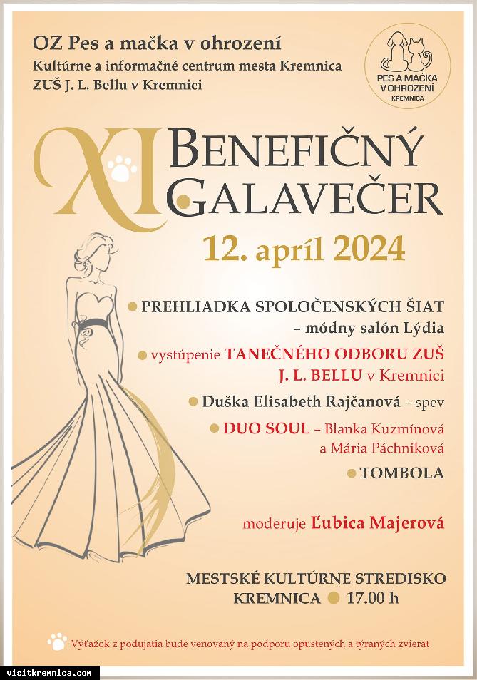 OZ Pes a mačka v ohrození, Kultúrne a informačné centrum mesta Kremnica a ZUŠ J. L. Bellu v Kremnici vás pozývajú na XI. Benefičný galavečer.