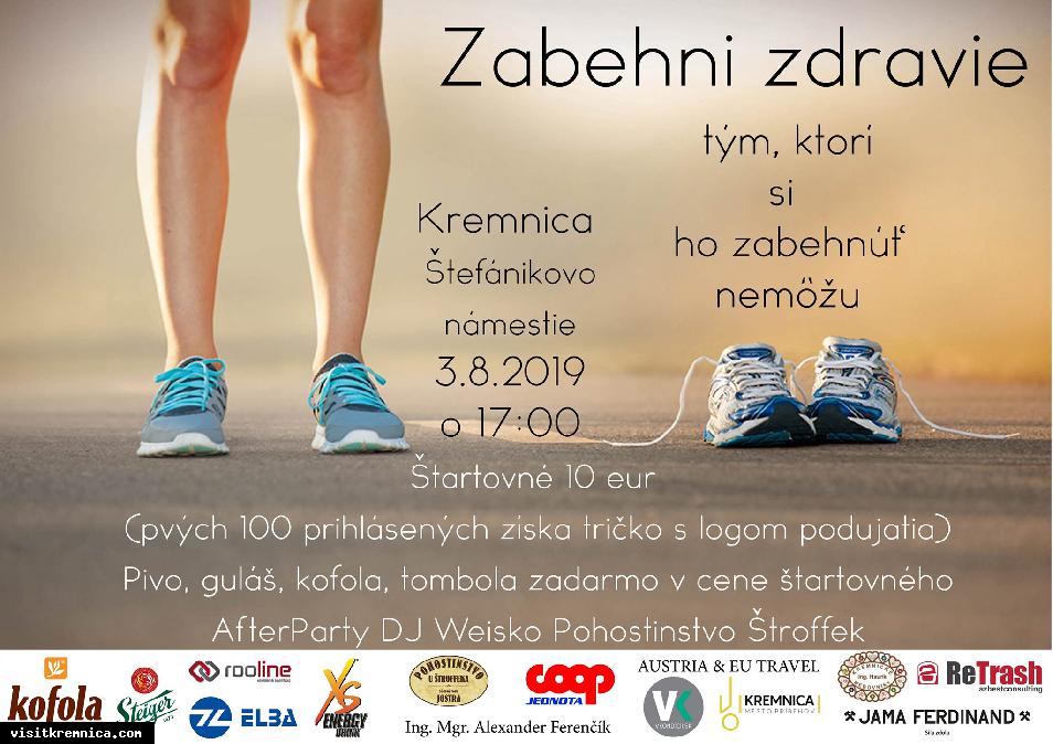 Preto vás všetkých pozývame 3.8. na Štefánikovo námestie v Kremnici na siedmy ročník charitatívneho športového podujatia Zabehni zdravie 2019.