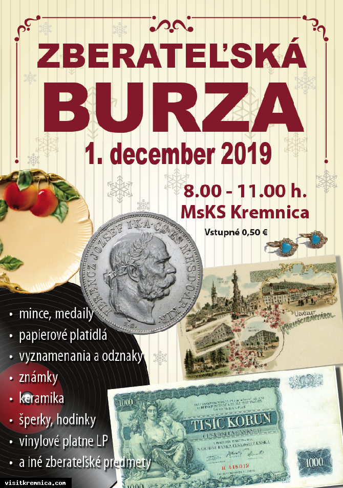 Čo: Zberateľská burza 2019Kedy: 1. december 2019, 08.00Kde: MsKS Kremnica