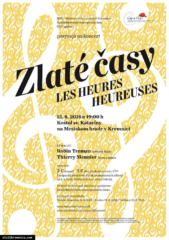 NBS - Múzeum mincí a medailí Kremnica pozýva na koncert, ktorý sa bude konať v rámci festivalu CAPALEST V REGIÓNE. Zaznie výber výnimočných renesančných a barokových skladieb. Kremnickému publiku sa predstavia dvaja francúzsky umelci Robin Troman - hráč na zobcových flautách a Thierry Meunier - hráč na lutne a gitare.