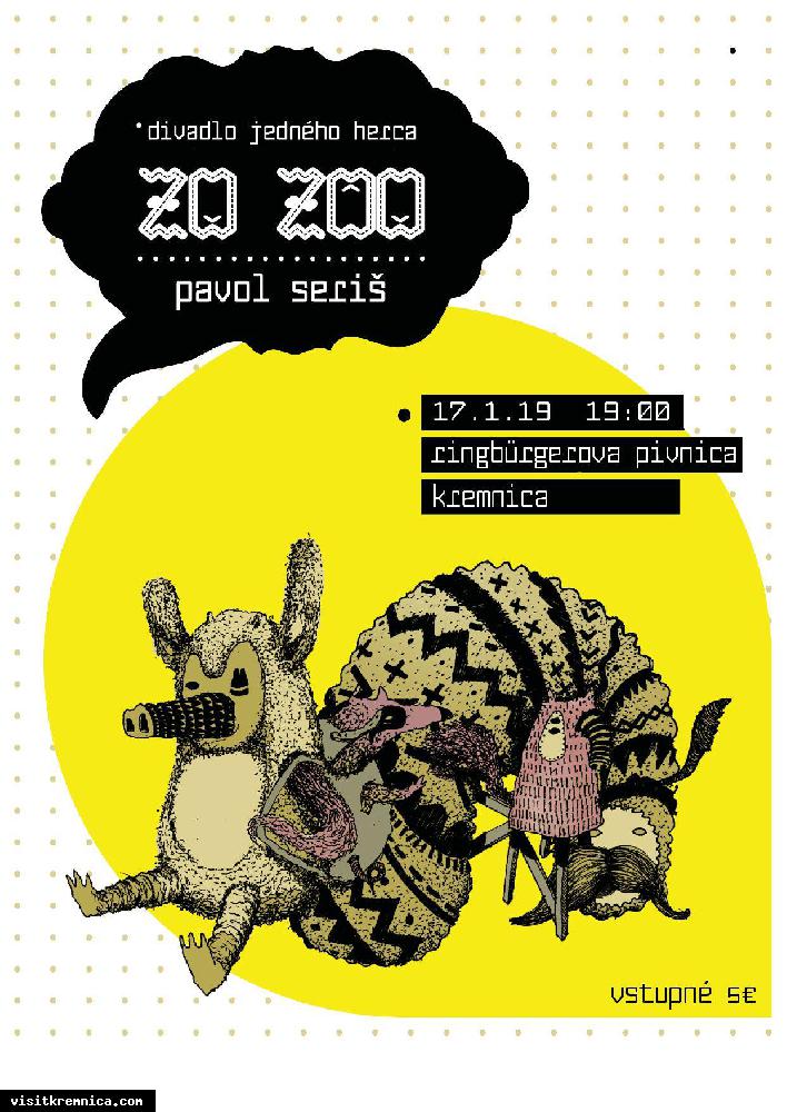 Zo ZOO je energická pohybová komédia jedného herca z prostredia zoologickej záhrady. Hra spája divadlo, pantomímu, absurdný humor, stand-up comedy a tanec. Bez použitia rekvizít počíta táto pestrá plejáda komických charakterov a zvierat s aktívnou predstavivosťou diváka. Hra bola pozitívne prijatá napr. v Divadle Na zábradlí v Prahe, v Huse na provázku v Brne či na festivale Pohoda 2015 v Trenčíne.
